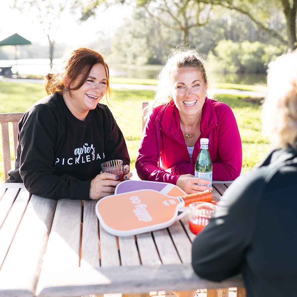 If you're not hanging with friends after the match to swap highlights, are you even playing Pickleball? Shop our Après Pickleball crewneck for some after-pickle swagger.